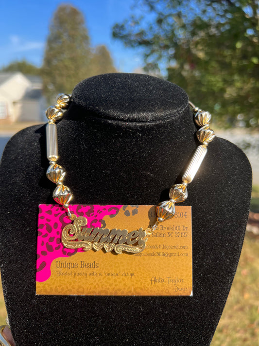 Sterling Silver Nameplate w/Beaded Chain