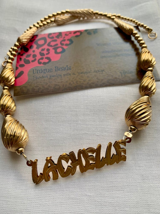 Gold Nameplate w/Beaded Chain